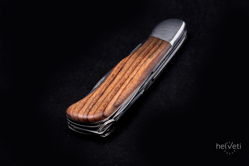Hiker je elegantní nůž s osvědčenou konstrukcí a tvarem. Zaoblené linie, kvalitní materiály a doplňkové funkce jsou jeho největší výhody. Čepel nože je vyrobena z kvalitní nerezové oceli 420 o tvrdosti 53-55 HRc. Střenka z exotického dřeva indického palisandru je příjemná a maximálně komfortní na úchop. Nůž Hiker je navíc vybavený pilkou, otvírákem na konzervy, křížovým šroubovákem, bodcem a otvírákem na lahve, který plní také funkci plochého šroubováku.