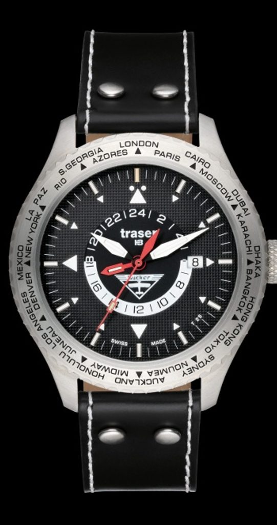Hodinky Bücker Automatic Utc byly vyrobeny v limitované edici pouhých 100 ks! Zaujmou hlavně mechanickým strojkem s automatickým nátahem a UTC komplikací, konvexním safírovým sklíčkem a velmi robustním, nerezovým pouzdrem. Další zajímavostí je oboustranně otočná luneta, na které jsou vyznačeny časové zóny s názvy měst a průhled dýnkem na strojek. Na výběr jsou dva druhy pásků: ocelový a kožený.