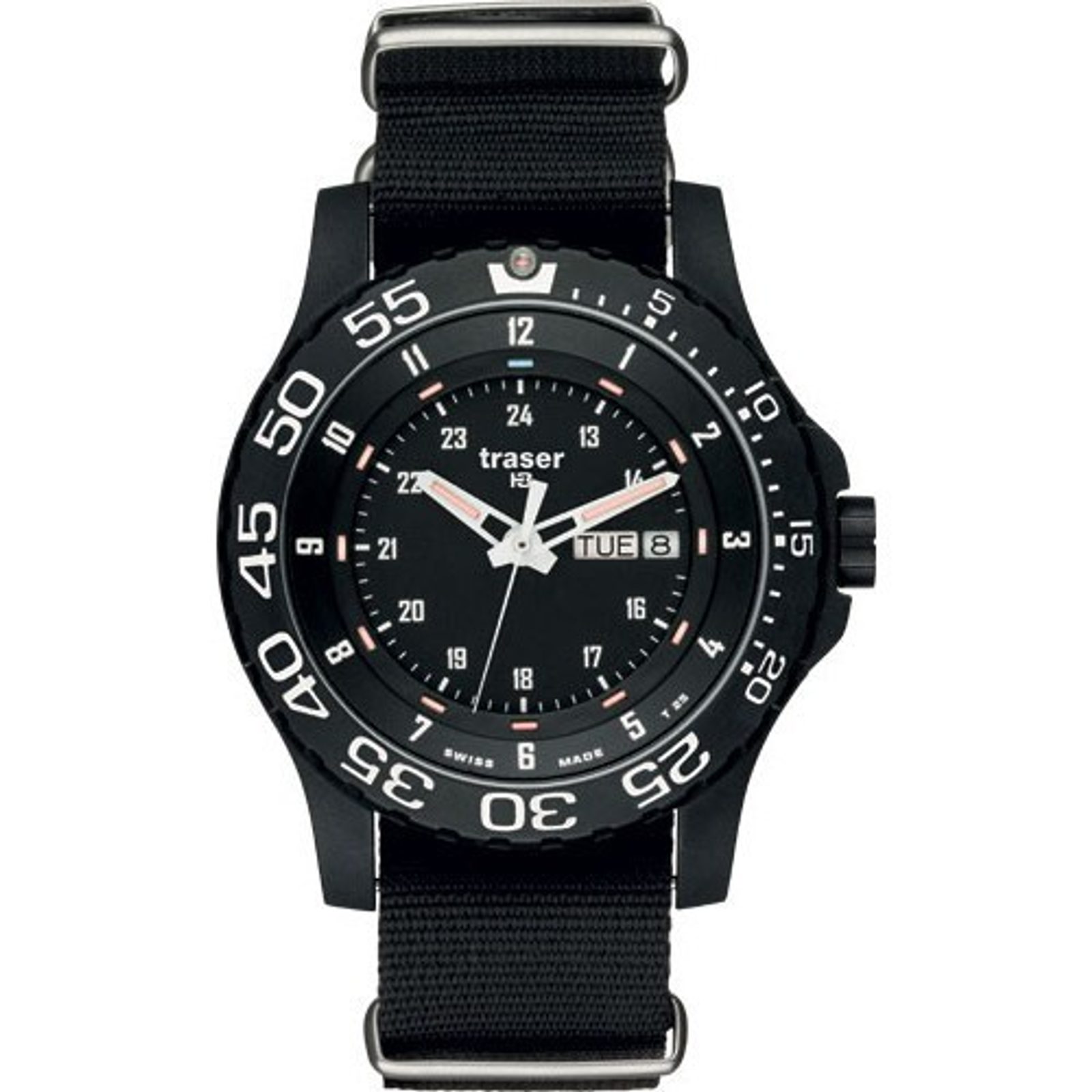 Hodinky P 6600 Elite Red jsou díky dvojité konstrukci pouzdra a vysoké vodotěsnosti vhodné do velmi náročného prostředí. Jak již název napovídá (Traser P6600 Elite Red), jedná se o červené provedení technologie trigalight a hodinky tak mají ve tmě rudý nádech. Hodinky kromě času a data ukazují i den. K dispozici jsou řemínky ze dvou druhů materiálů: nato a pryž.