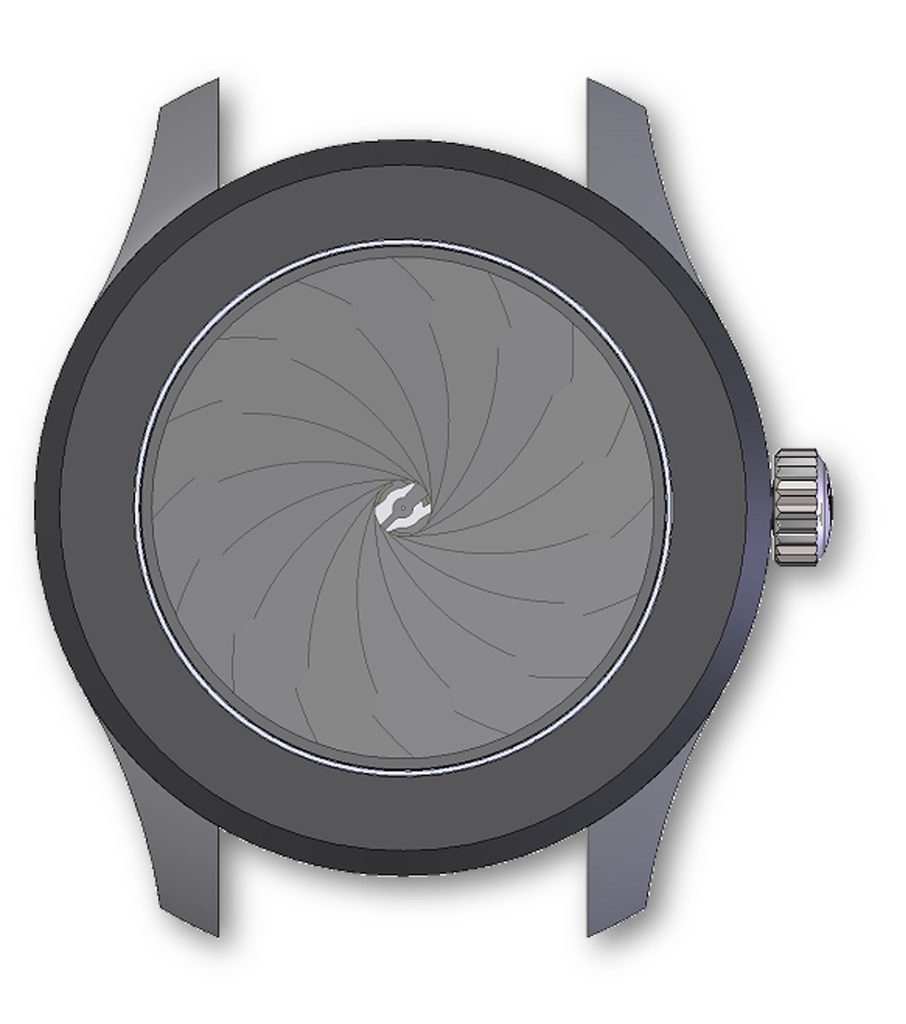 Pouzdro vyrobené z oceli s černou PVD úpravou a vodotěsností do 100 metrů je navíc ještě zajištěno šroubovací korunkou a pevným šroubovaným dýnkem s vyrytým číslem dané limitované edice. Hodinky tak poskytují účinnou ochranu jak pro mechanismus clony, tak švýcarskému quartzovému strojku Ronda 517 s funkcí zobrazení data a dne v týdnu.