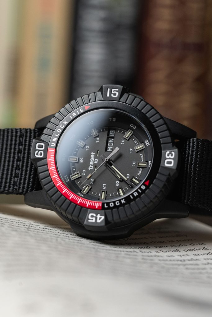 V letošním roce Traser představuje hned dvě převratné inovace se speciální edicí Traser P99 Iris Tactical Nato, limitovanou na 300 kusů. Kombinace světelných zdrojů nové generace Super Powered trigalights a uzavíratelné irisové clony zajišťuje optimální čitelnost s absolutní kontrolou nad luminiscencí. Obě tato patentovaná řešení jsou švýcarské výroby a jsou výsledkem dlouholetého vývoje. Stálé světelné zdroje umožňují spolehlivé zobrazení času i v dlouhotrvající tmě.