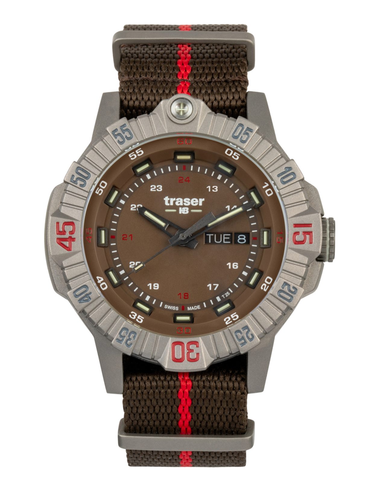 Hodinky Traser P99 T Tactical Brown Nato jsou hodinky, kterým se rozhodně nedá upřít jejich vojenský vzhled. Tento model byl představen v roce 2023. Budou Vám skvělým parťákem při putování přírodou, na vojenské akci, či třeba pro použití ve vodě.
